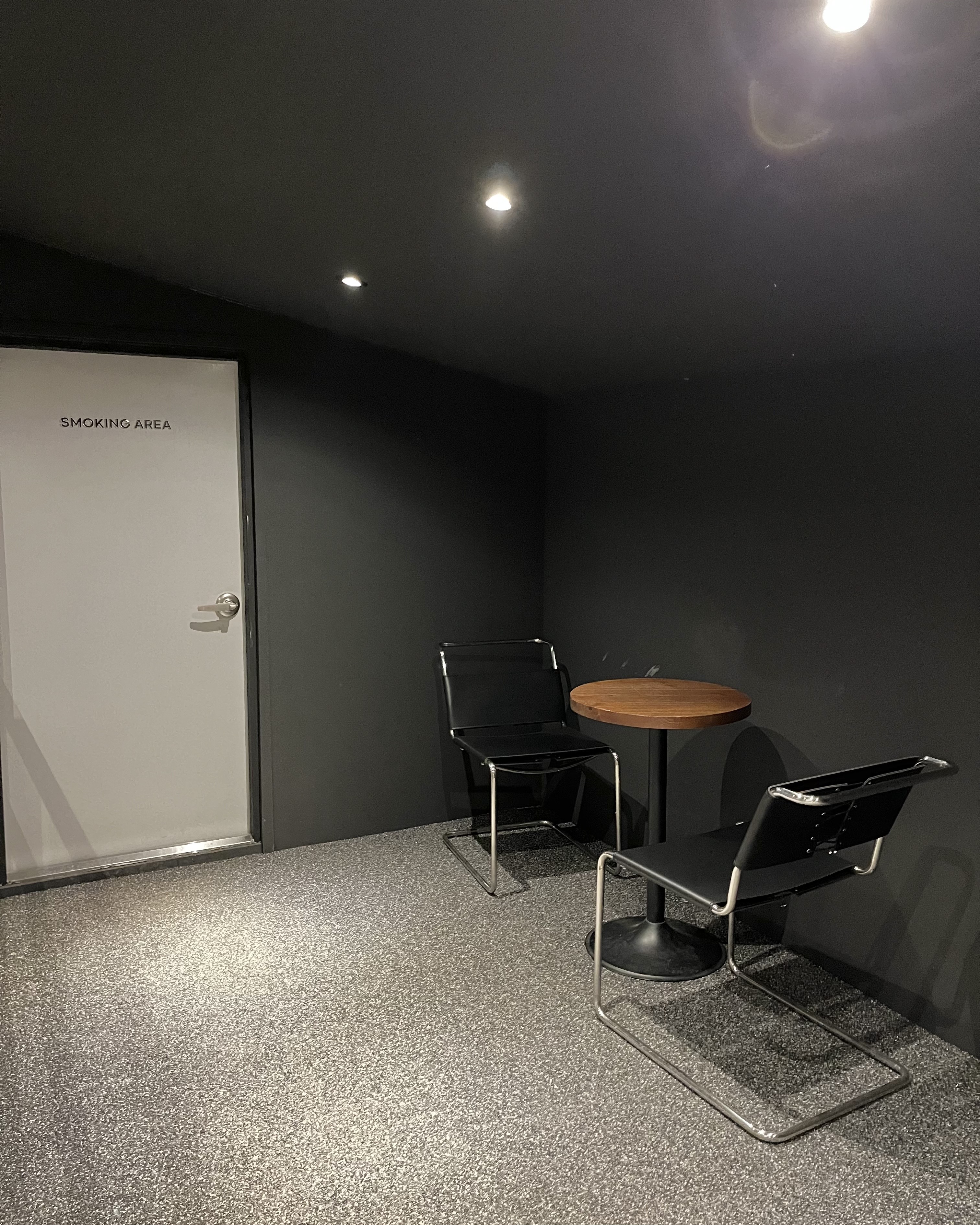 마지막 4층에는 테이블이 놓인 흡연실과 외부로 통하는 통로가 있습니다.