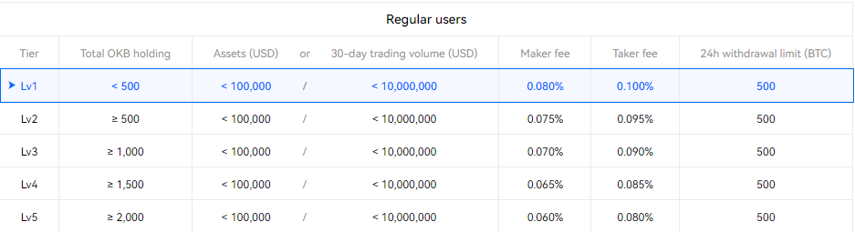 하지만 OKX 거래소의 경우 한 달에 일정 금액 이상 거래되고 일정 금액의 자본을 가진 사용자의 경우 OKX 거래소에서 VIP 혜택을 제공합니다.