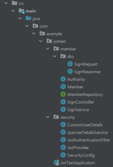 반면 응답은 권한이나 토큰을 반환해야 하므로 응답 dto 페이지에 추가했습니다.